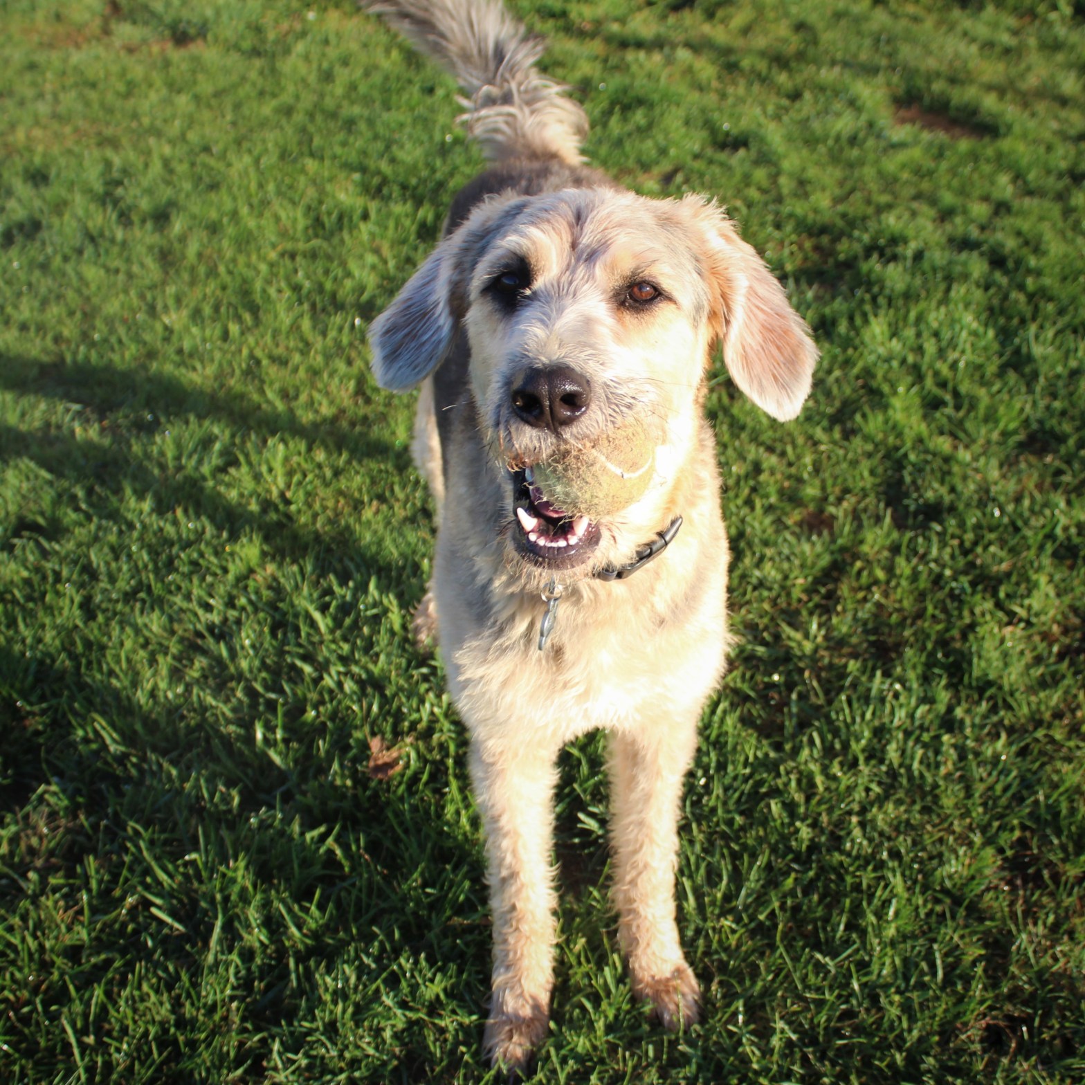 Tiger is ready for a game of chase for the ball! Catch me if you can he says.